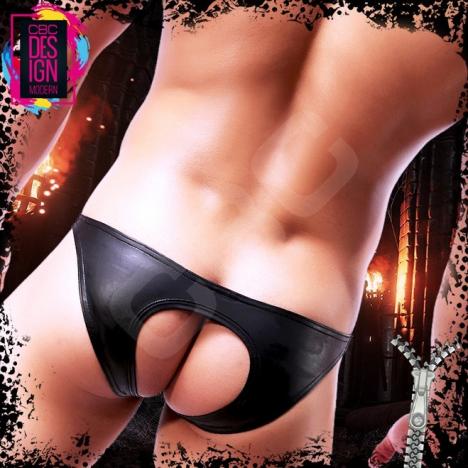 WOWHOMME根納季水誘光仿皮面開臀比基尼三角褲
