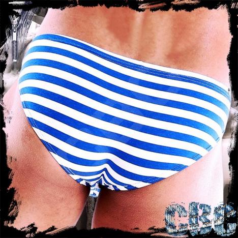 YUAITIANSHI伊維薩土耳其藍水手條紋超低腰三角褲