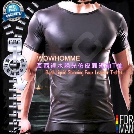 WOWHOMME瓦西裡水誘光仿皮面短袖T恤